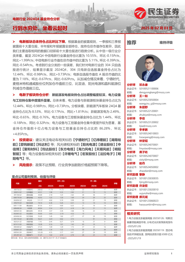 【民生证券】【20250203】电新行业2024Q4基金持仓分析:行到水穷处,坐看云起时-14页
