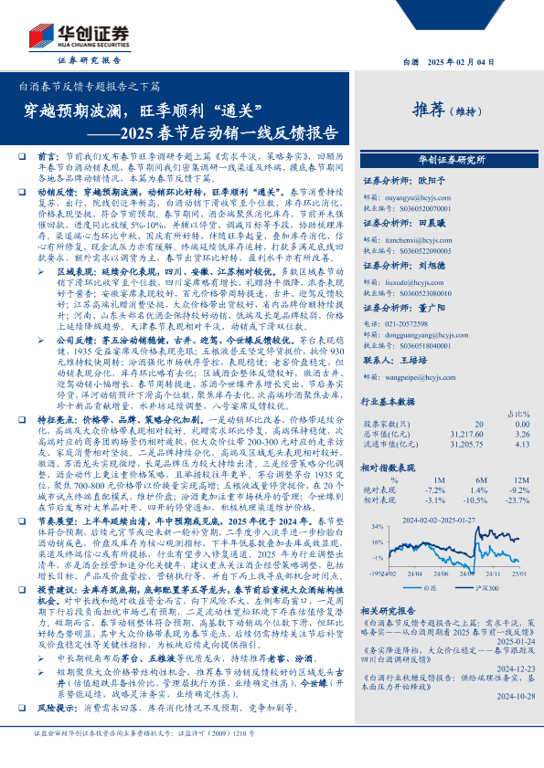 【华创证券】【20250204】白酒行业2025春节后动销一线反馈报告:白酒春节反馈专题报告之下篇,穿越预期波澜,旺季顺利“通关”-13页
