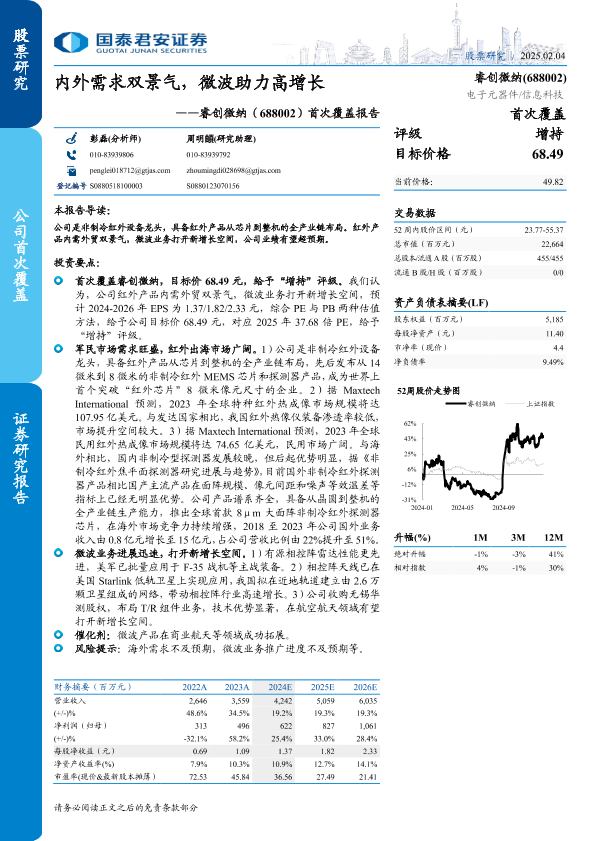 【国泰君安证券】【20250204】睿创微纳(688002)首次覆盖报告:内外需求双景气,微波助力高增长-27页