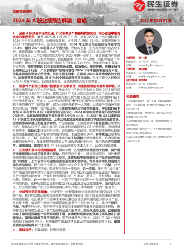 【民生证券】【20250201】策略专题研究-2024年A股业绩预告解读:磨底-23页