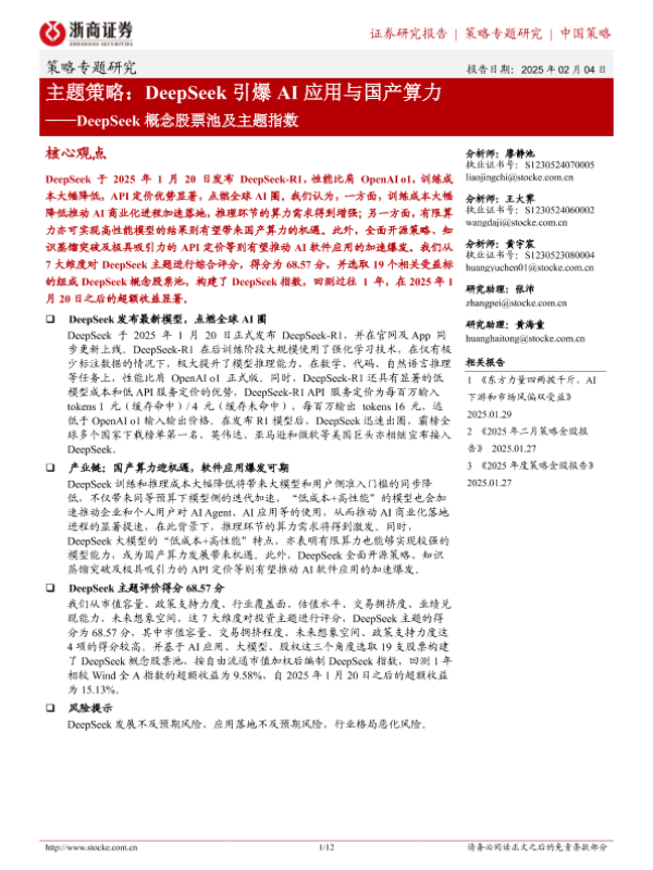 【浙商证券】【20250204】策略专题研究-主题策略:DeepSeek引爆AI应用与国产算力,DeepSeek+概念股票池及主题指数-12页