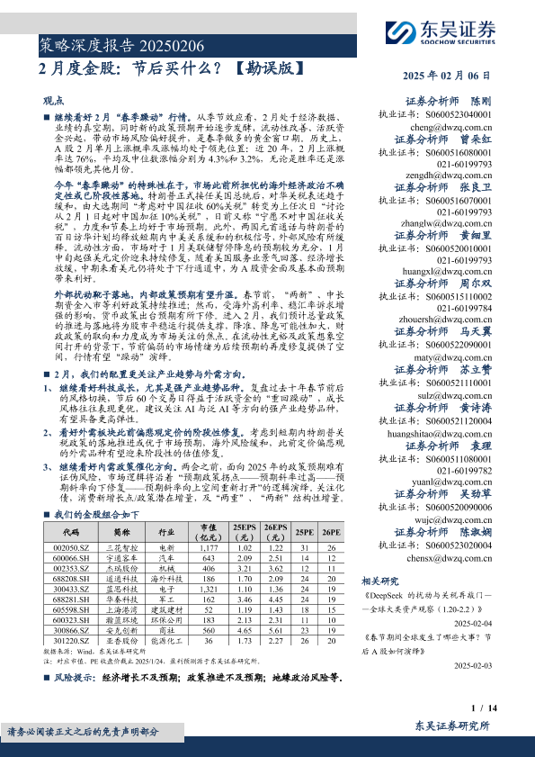 【东吴证券】【20250206】策略深度报告:2月度金股,节后买什么?【勘误版】-14页