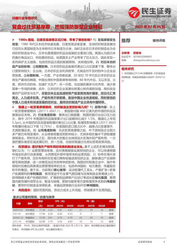 【民生证券】【20250206】纺服行业专题研究:复盘过往贸易摩擦,挖掘强防御型企业特征-19页