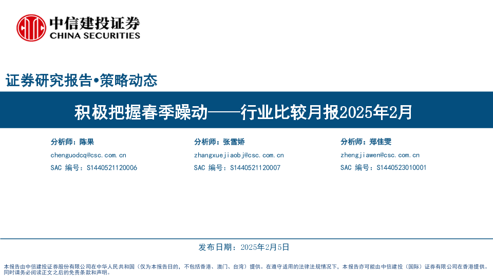 【中信建投证券】【20250205】行业比较月报2025年2月:积极把握春季躁动-35页