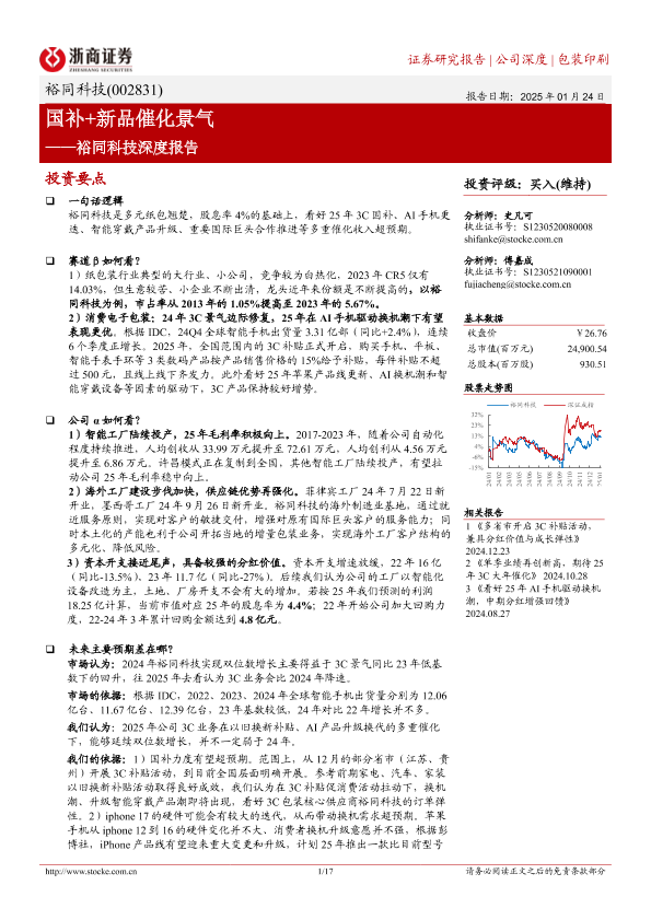 【浙商证券】【20250124】裕同科技(002831)深度报告:国补%2b新品催化景气-17页