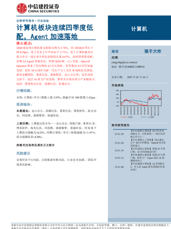 【中信建投证券】【20250126】计算机行业动态:计算机板块连续四季度低配,Agent加速落地-12页