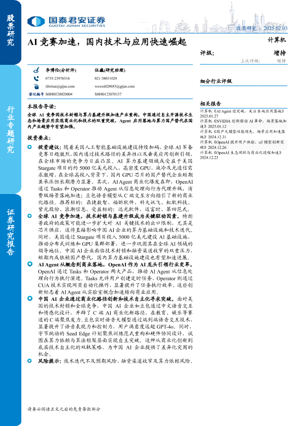 【国泰君安证券】【20250203】计算机行业:AI竞赛加速,国内技术与应用快速崛起-11页