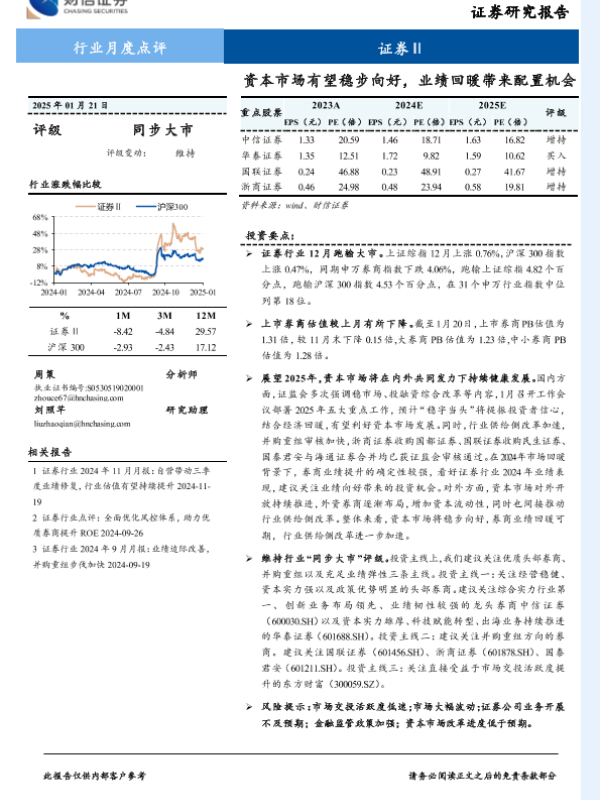 【财信证券】【20250121】证券行业月度点评:资本市场有望稳步向好,业绩回暖带来配置机会-12页