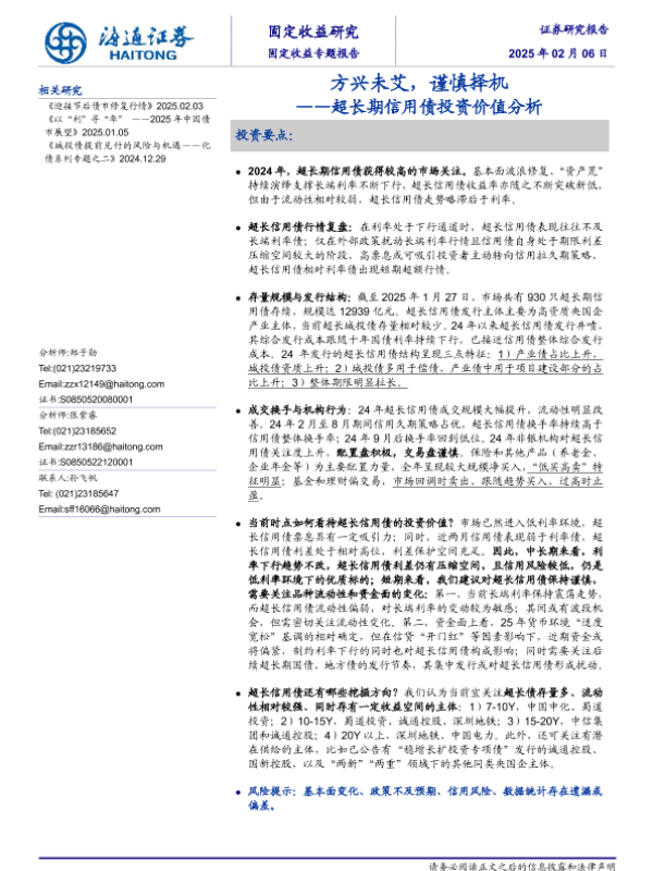 【海通证券】【20250206】超长期信用债投资价值分析:方兴未艾,谨慎择机-15页