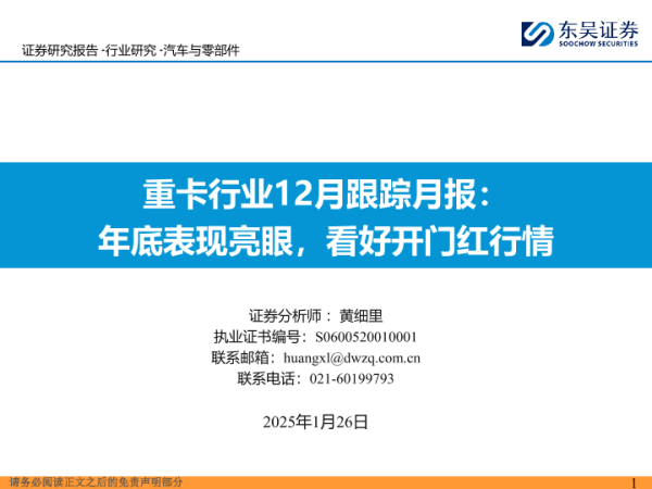 【东吴证券】【20250126】重卡行业12月跟踪月报:年底表现亮眼,看好开门红行情-31页