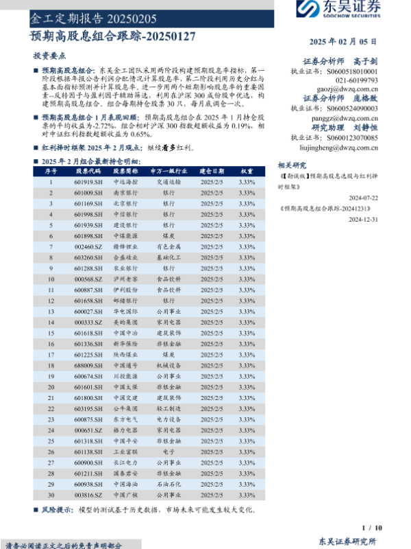 【东吴证券】【20250205】金工定期报告:预期高股息组合跟踪-10页