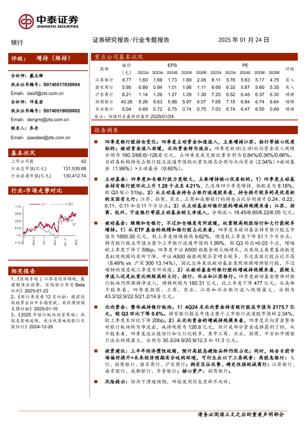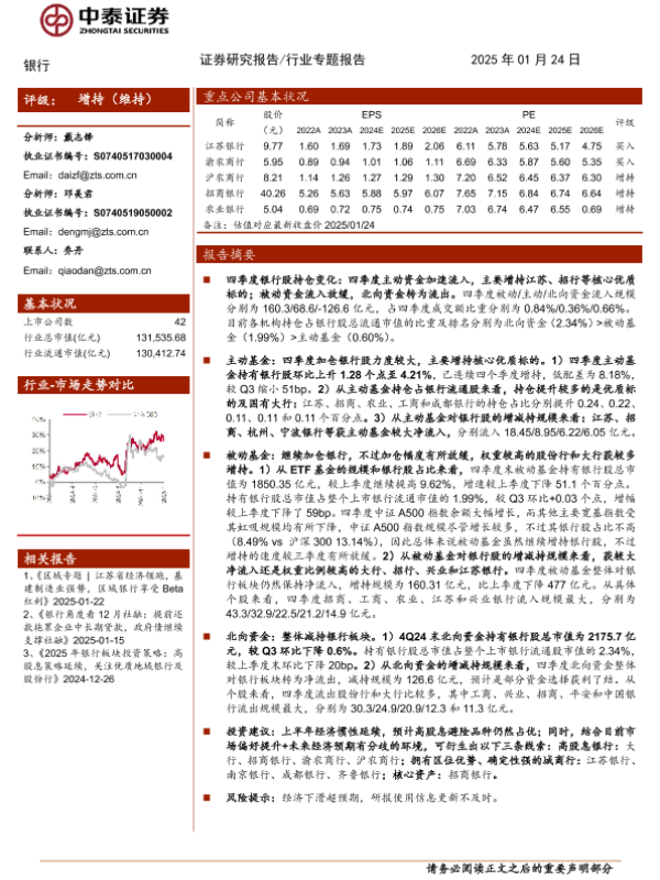 【中泰证券】【20250124】银行业详解基金4Q24银行持仓:主动资金加速增持核心优质标的-19页