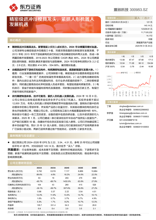 【东方证券】【20250125】震裕科技(300953)精密级进冲压模具龙头,紧抓人形机器人发展机遇-37页