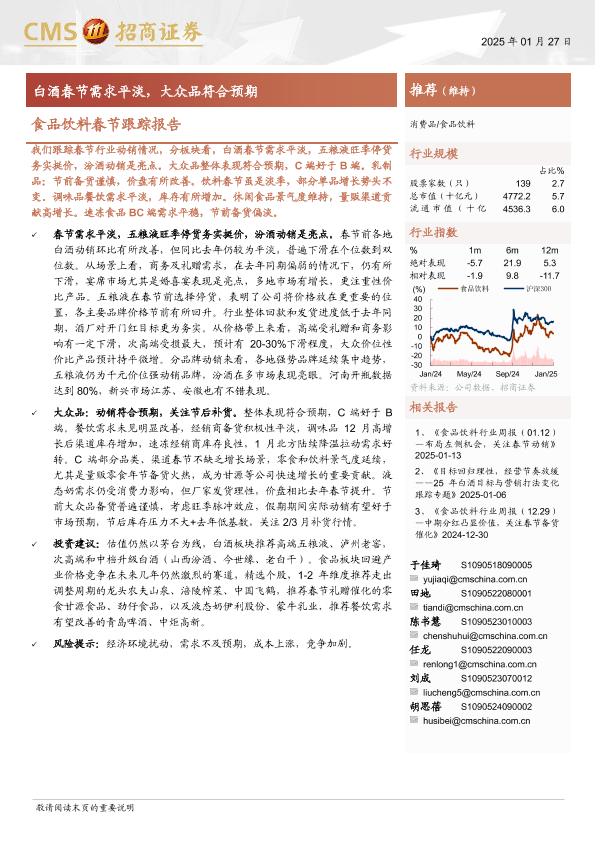 【海通证券】【20250127】食品饮料行业春节跟踪报告:白酒春节需求平淡,大众品符合预期-10页