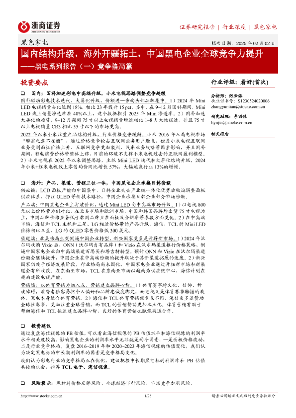 【浙商证券】【20250202】黑电系列报告(一)竞争格局篇:国内结构升级,海外开疆拓土,中国黑电企业全球竞争力提升-25页