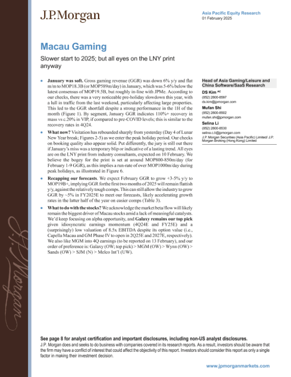 【J.P. Morgan】【20250201】Macau Gaming Slower start to 2025; but all eyes on the LNY print-12页