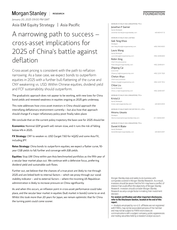【Morgan Stanley】【202501】Asia EM Equity Strategy A narrowing path to success – cross-asset implications for 2025 of China's battle against deflation-27页