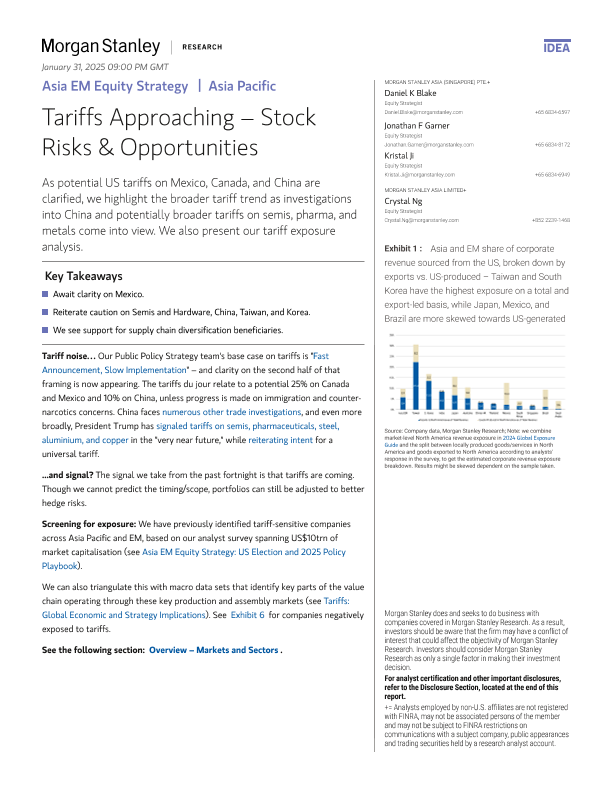 【Morgan Stanley】【20240922】Asia EM Equity Strategy Tariffs Approaching – Stock Risks & Opportunities-22页