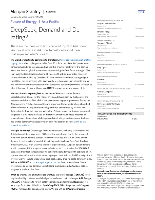 【Morgan Stanley】【2024】Morgan Stanley-Future of Energy DeepSeek, Demand and De-rating-11页