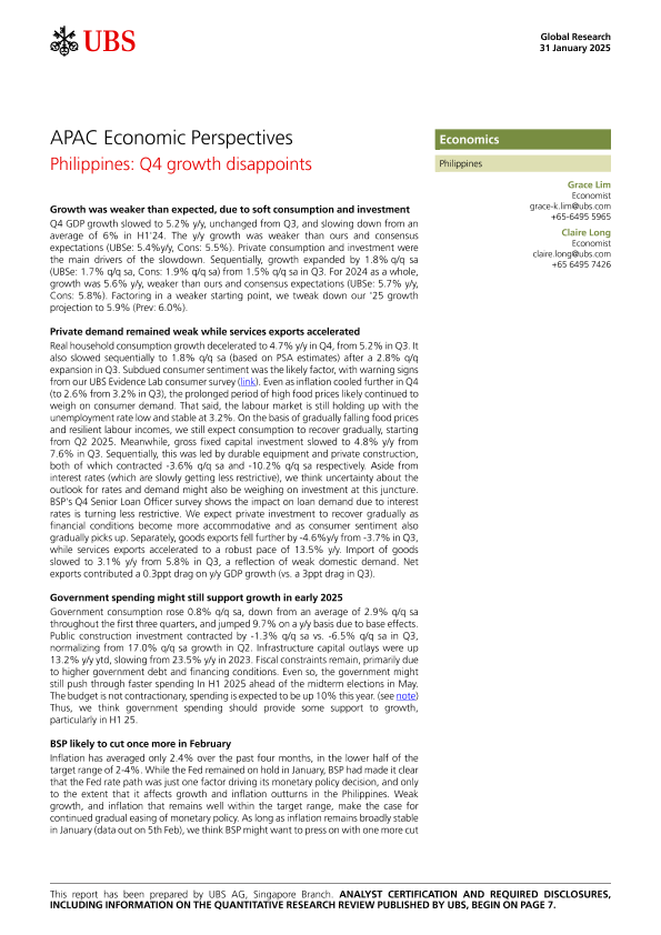 【UBS AG】【20250131】ics-APAC Economic Perspectives _Philippines Q4 growth disappoints-10页