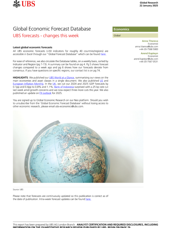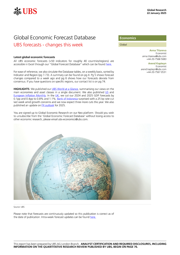 【UBS】【20250122】Global Economic Forecast Database _UBS forecasts - changes this week-79页