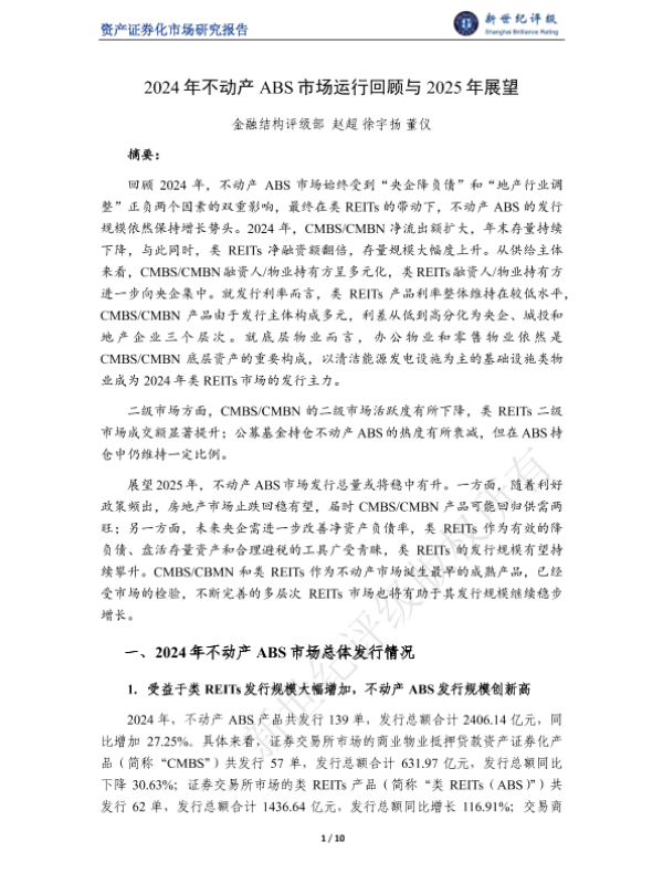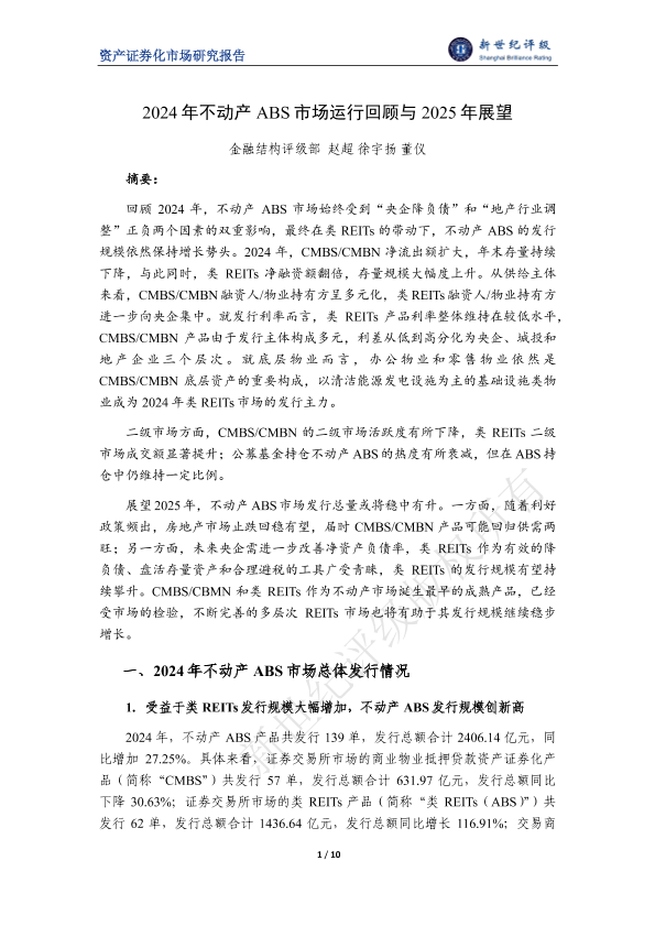 【金融结构评级部】【2024】2024年不动产ABS市场运行回顾与2025年展望-10页