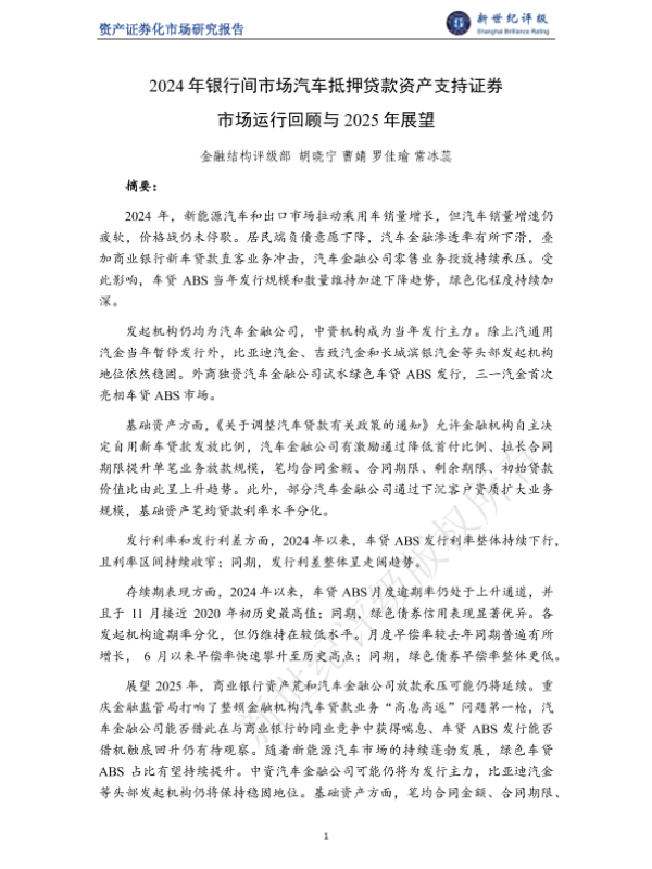 【金融结构评级部】【2024】2024年银行间市场汽车抵押贷款资产支持证券市场运行回顾与2025年展望-10页
