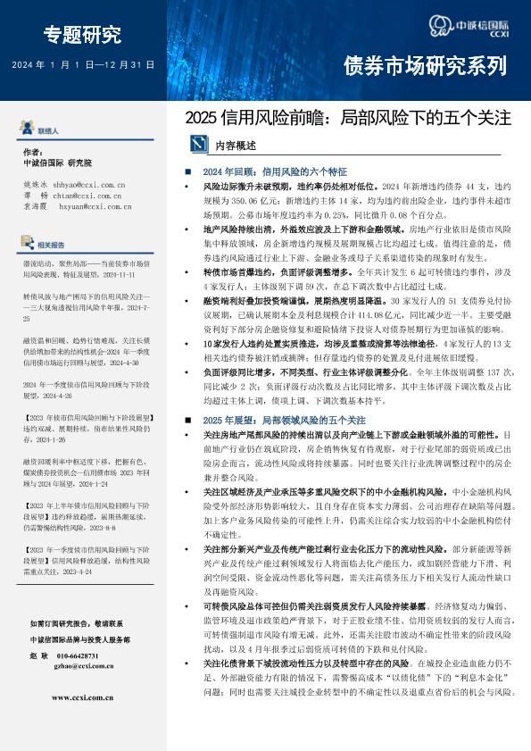 【中诚信国际】【20240101】2025信用风险前瞻:局部风险下的五个关注-10页