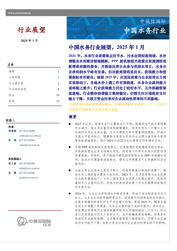 【中诚信国际】【202501】中国水务行业展望(2025年1月)-16页