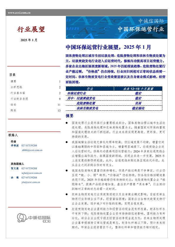 【中诚信国际】【202501】中国环保运营行业展望(2025年1月)-16页