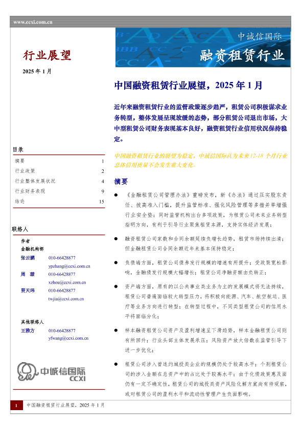 【中诚信国际】【202501】中国融资租赁行业展望(2025年1月)-17页