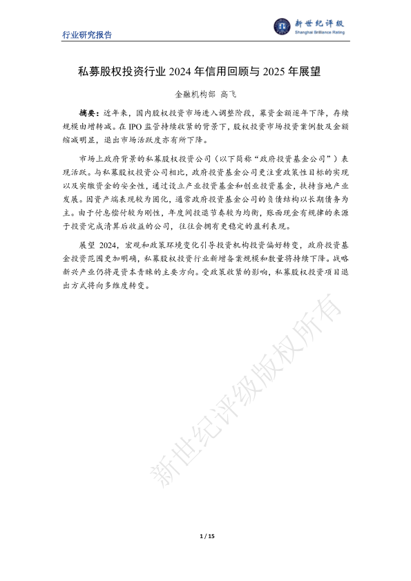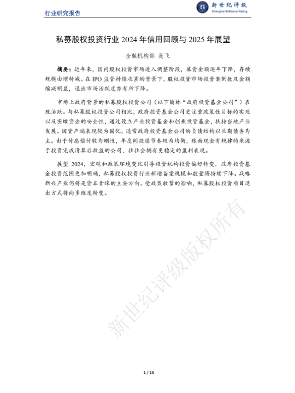 【金融机构部高飞】【2024】私募股权投资行业2024年信用回顾与2025年展望-15页