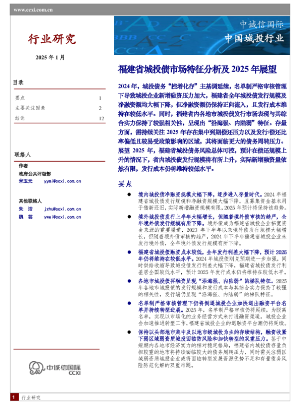 【中诚信国际】【202501】行业研究-福建省城投债市场特征分析及2025年展望-13页