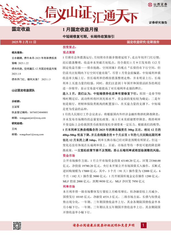 【山西证券】【20250211】1月固定收益月报:中短端修复可期,长端待政策指引-14页