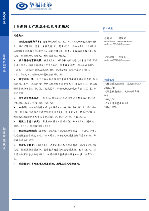 【华福证券】【202501】1月新股上市及基金收益月度跟踪-10页