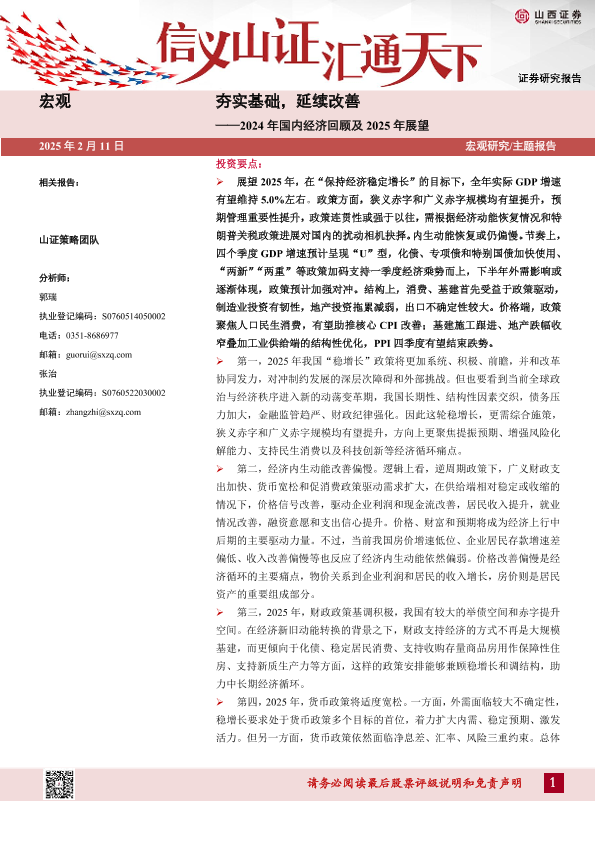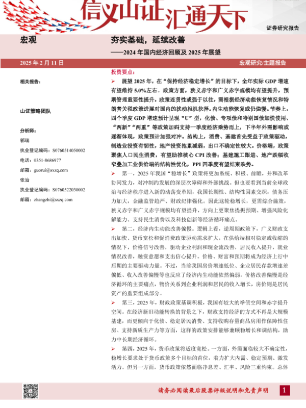 【山西证券】【20250211】2024年国内经济回顾及2025年展望:夯实基础,延续改善-30页