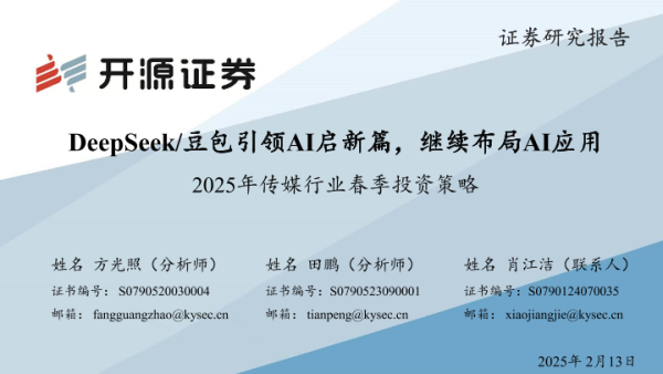 【开源证券】【20250213】2025年传媒行业春季投资策略:DeepSeek/豆包引领AI启新篇,继续布局AI应用-43页