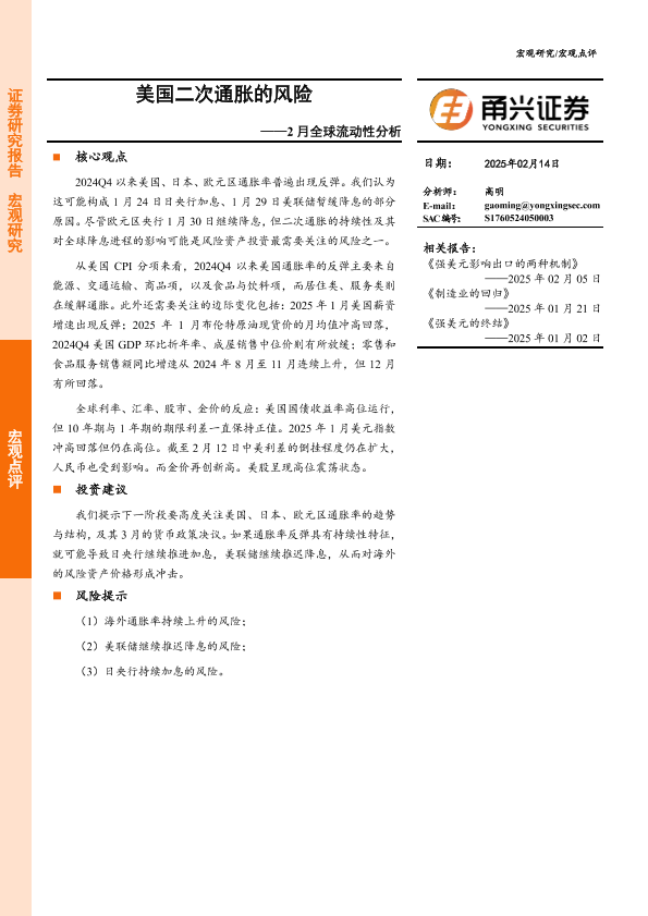 【甬兴证券】【20250214】2月全球流动性分析:美国二次通胀的风险-12页