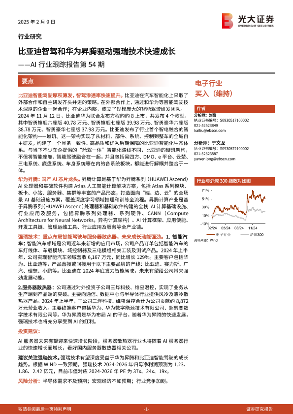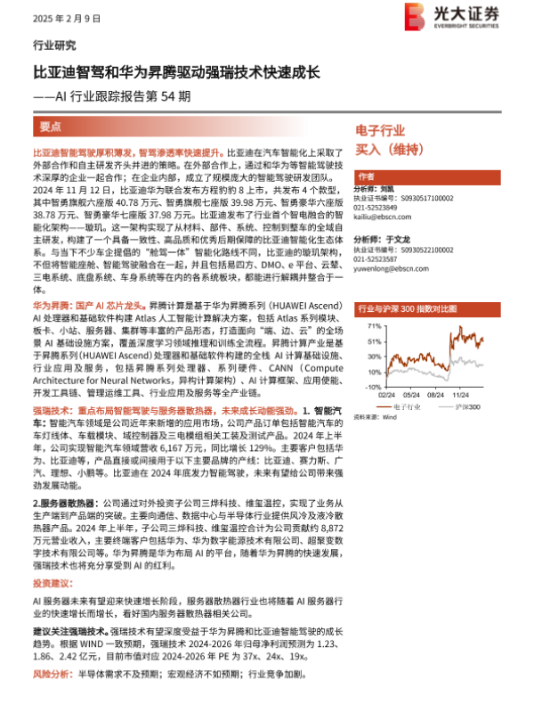 【光大证券】【20250209】AI行业跟踪报告第54期:比亚迪智驾和华为昇腾驱动强瑞技术快速成长-14页