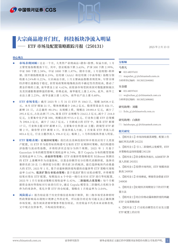 【银河证券】【20250213】ETF市场及配置策略跟踪月报(250131) 大宗商品迎开门红,科技板块净流入明显-24页