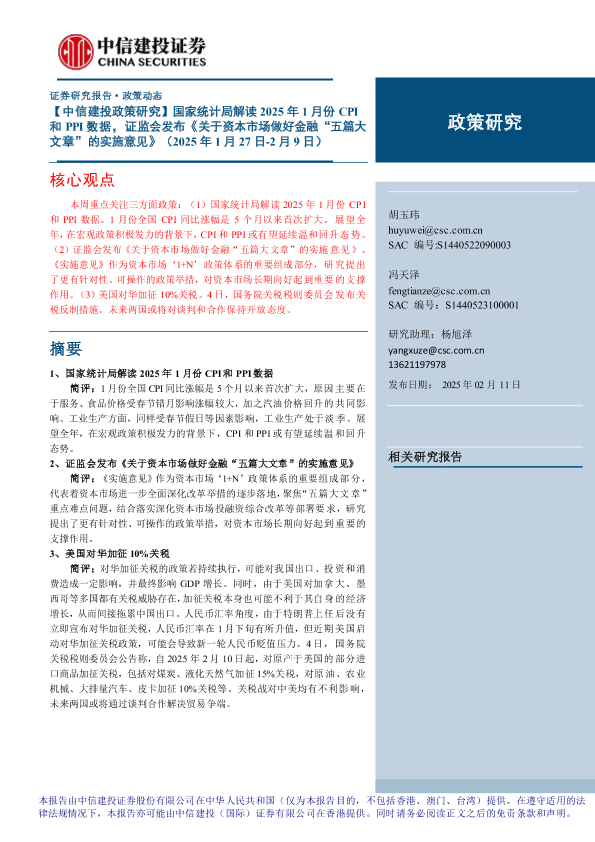 【中信建投证券】【20250211】年1月份CPI和PPI数据,证监会发布《关于资本市场做好金融“五篇大文章”的实施意见》-15页