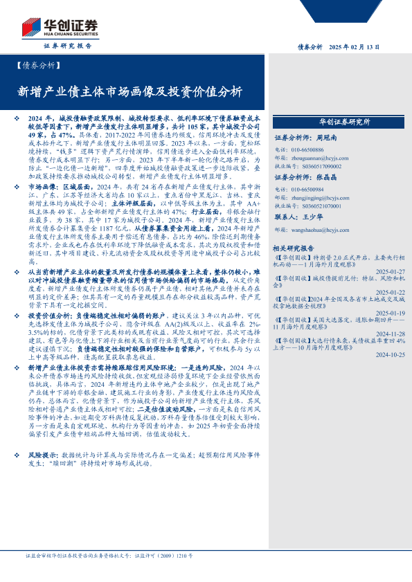 【华创证券】【20250213】【债券分析】新增产业债主体市场画像及投资价值分析-14页