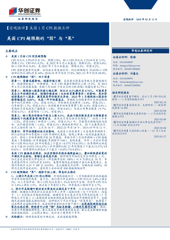 【华创证券】【20250213】【宏观快评】美国1月CPI数据点评:美国CPI超预期的“因”与“果”-11页