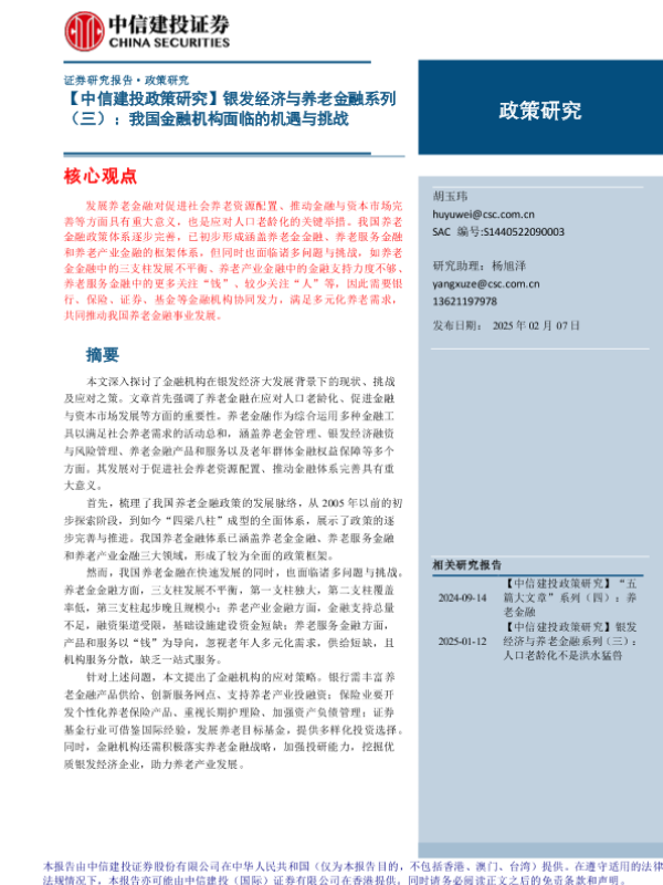 【中信建投证券】【20250207】银发经济与养老金融系列(三):我国金融机构面临的机遇与挑战-16页