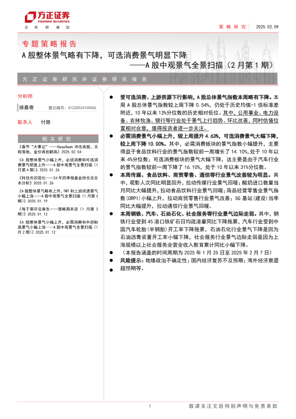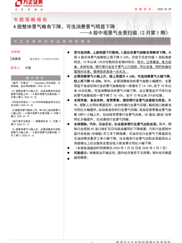 【方正证券】【20250209】专题策略报告:A股中观景气全景扫描(2月第1期)-25页