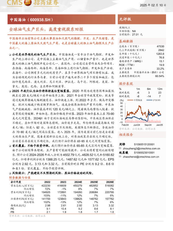 【海通证券】【20250210】中国海油(600938)全球油气生产巨头,高度重视股东回报-22页