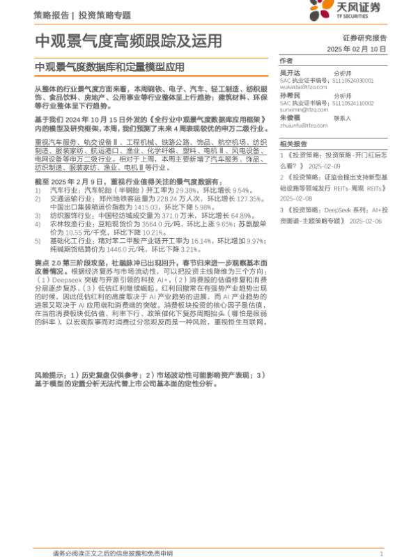 【天风证券】【20250210】中观景气度高频跟踪及运用:中观景气度数据库和定量模型应用-18页