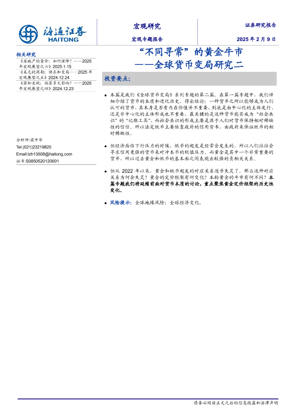 【海通证券】【20250209】全球货币变局研究二:“不同寻常”的黄金牛市-10页