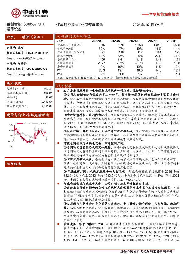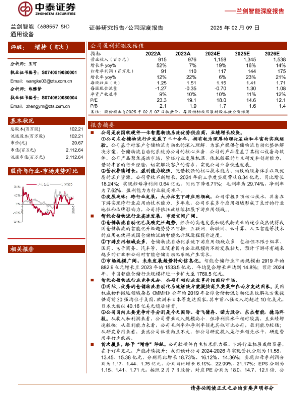 【中泰证券】【20250209】兰剑智能(688557)深度报告:引领智能仓储,未来成长可期-21页