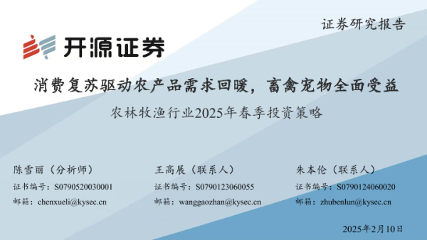 【开源证券】【20250210】农林牧渔行业2025年春季投资策略:消费复苏驱动农产品需求回暖,畜禽宠物全面受益-51页
